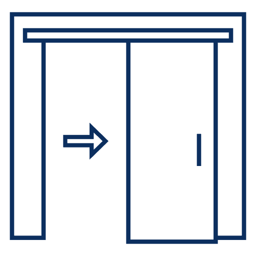 Solution la plus simple car cela ne requiert qu’une fixation au mur, apparent, permettant à la porte de coulisser sur un rail. Le rail vous avez le choix de le prendre apparent ou caché dans un coffrage.